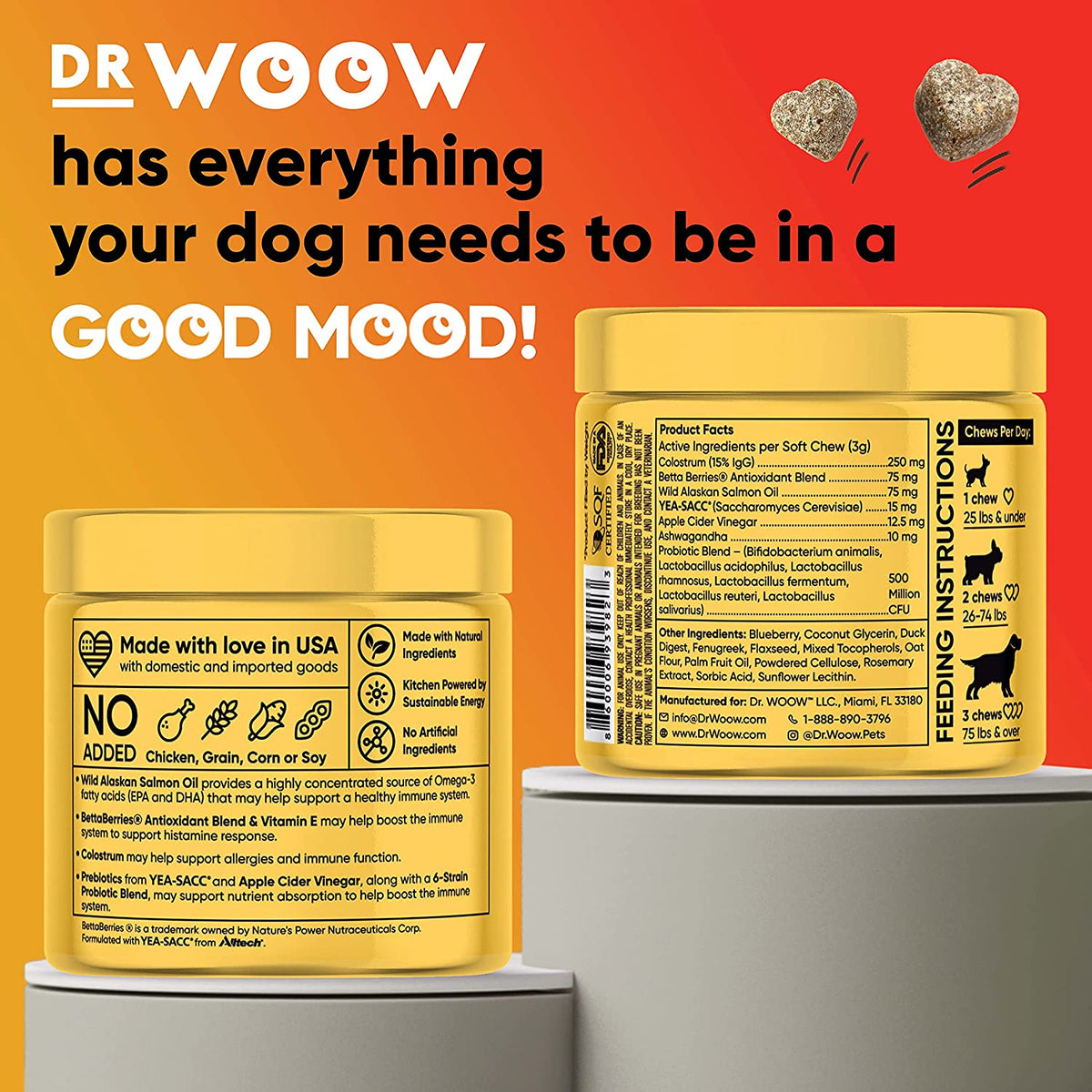Dr Woow’s Immunity Chews helps sooth seasonal allergies and boosts the immune system. Great supplement as a daily multivitamin to boost overall health, as well as help dogs with itchy skin and allergies.