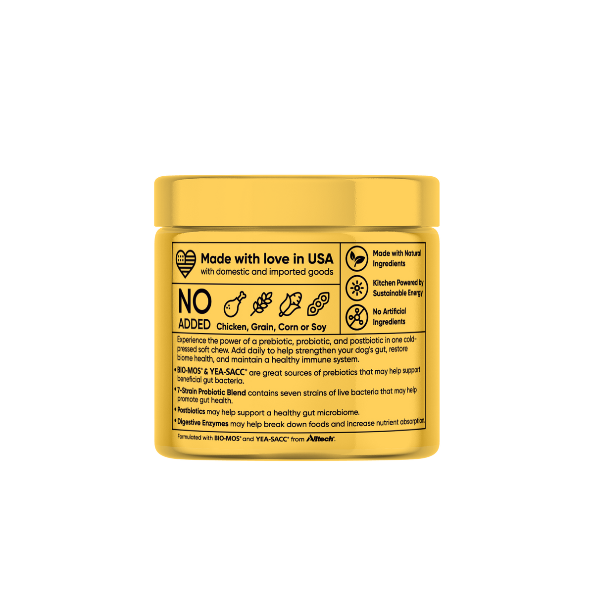 Made in USA in an FDA registered facility that is 100% powered by solar energy. These soft chews were formulated by pet nutritionists and are endorsed by vets.